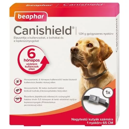 Beaphar Canishield® este o zgardă antipurici, căpușe și țânțari pentru câini, care conține ingredientul activ deltamethrin. Deltametrina este eliberată treptat din structura polimerică care alcătuiește zgarda și este distribuită într-un strat lipidic care acoperă corpul câinelui, oferind o protecție de lungă durată.