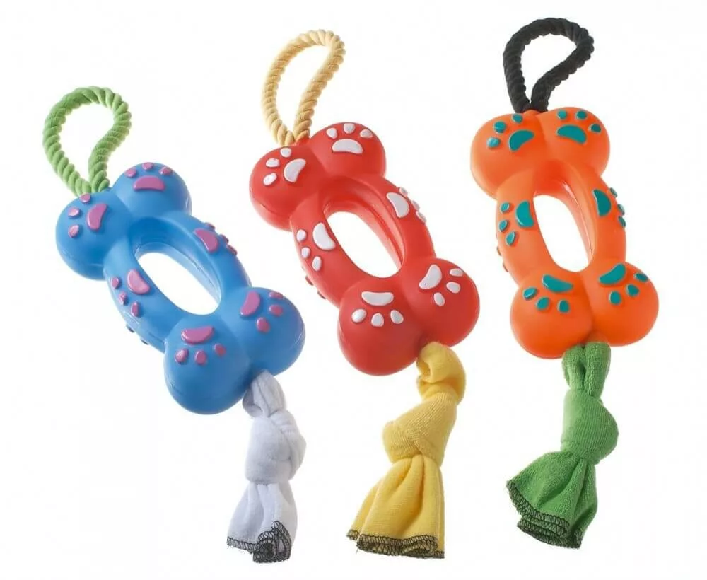 Un os de cauciuc în mijlocul jucăriei face ca mușcatul să fie mai ușor.