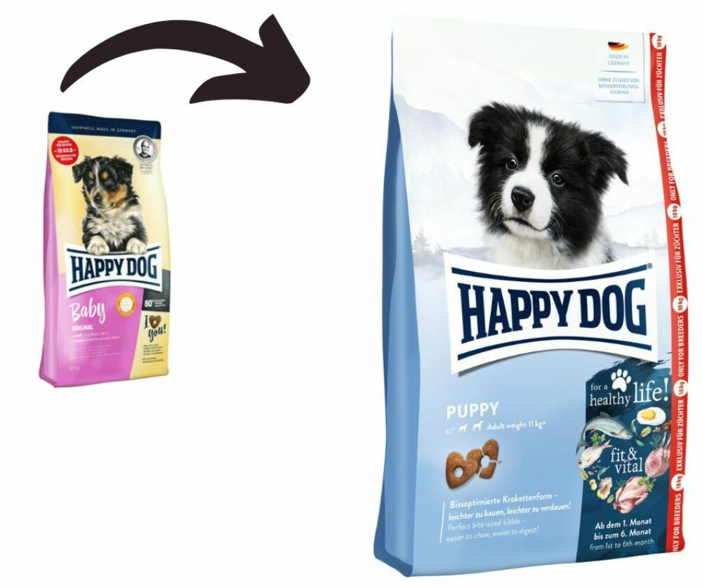 Happy Dog Profi Fit & Vital Puppy este o hrană completă dezvoltată pentru căței, recomandată de la vârsta de 4 săptămâni până la 6 luni.