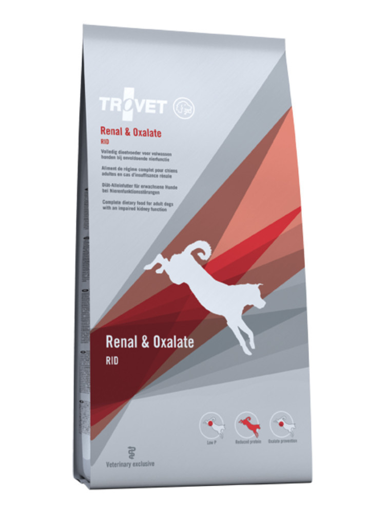 Haina Trovet Renal &; Oxalate/ RID este o hrană uscată gustoasă pentru câini adulți.